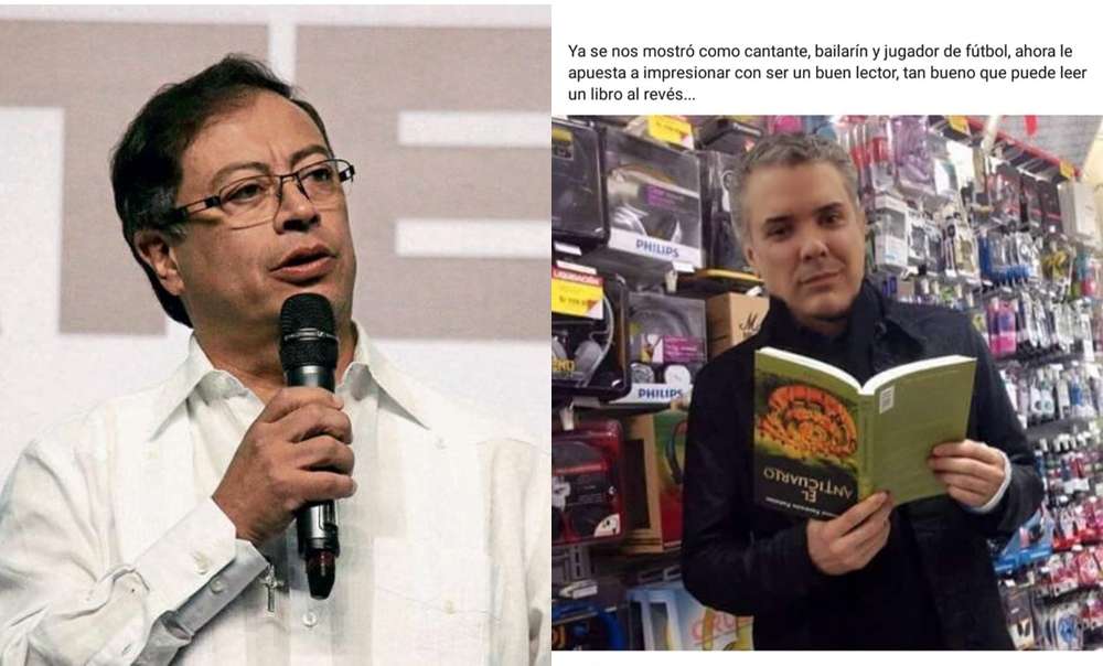 En efecto en la fotografía que es fake, aparece el presidente Duque leyendo un libro al revés, lo curioso es que la imagen que circula en redes sociales hace ya varios días también había sido etiquetada con el rótulo «fake», de ahí la molestia de muchos que creen en la «inocencia» del exaspirante presidencial y senador Gustavo Petro, y en contraste a brindarle su apoyo, literalmente se lo están acabando en las redes sociales. Entre los tantos duros comentarios lo señalan de promover las noticias falsas, otros por su parte le piden que rectifique o se retracte de su comentario.