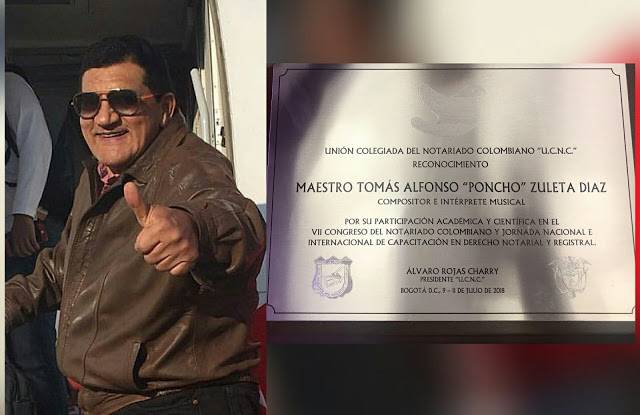 Por su trayectoria musical, el Notariado Colombiano, le realizó un reconocimiento al cantautor vallenato, Tomás Alfonso ‘Poncho’ Zuleta Díaz.