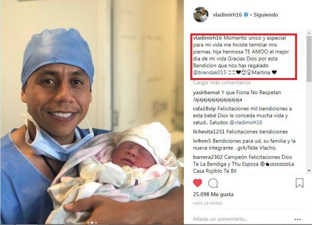La foto estuvo acompañada del siguiente texto, “momento único y especial para mi vida, me hiciste temblar mis piernas hija hermosa, te amo. El mejor día de mi vida. Gracias Dios por esta bendición que nos has regalado”, escribió el atacante.