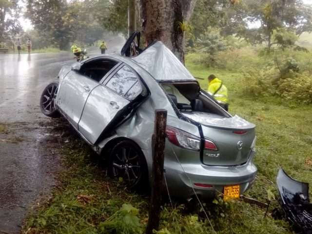 Un aparatoso accidente se registró en jurisdicción del corregimiento de Guarumo, Cáceres en la mañana de este viernes 27 de julio, luego de que un vehiculo en el que se movilizaban dos personas chocara contra un árbol a la orilla de la troncal de Occidente.