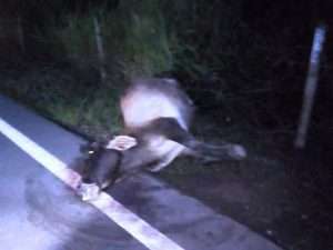 Según el reporte de las autoridades, tres vacas se atravesaron en la vía y murieron tras ser embestidas por el conductor de una camioneta Toyota Hilux de placas EHL 400.