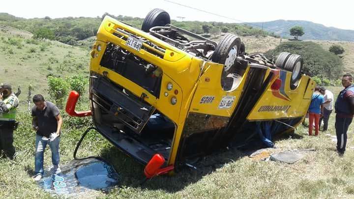 Hace pocos minutos un bus de servicio público se volcó en la vía que del municipio de Ovejas conduce al Carmen de Bolívar.