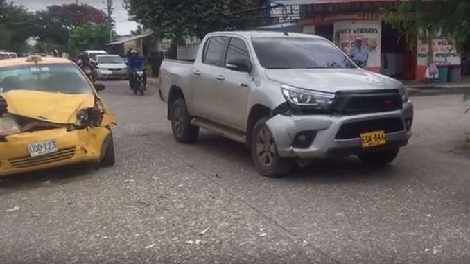 Este miércoles 13 de junio se registró un leve accidente de tránsito se registró en la calle 40 con carrera 11 de Montería en el que chocó un taxi contra una camioneta de placas EGK – 846.