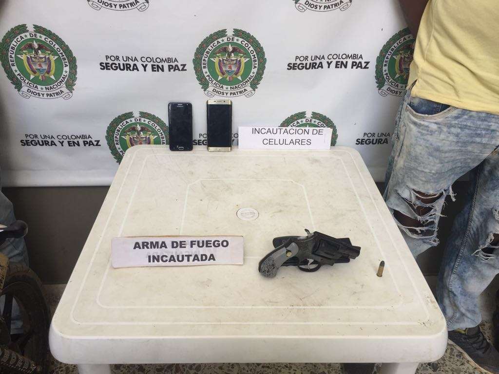 Los hechos sucedieron en el barrio San Vicente del municipio en mención, donde los uniformados en medio de un operativo de registro y control sorprendieron a dos hombres de 30 y 26 años de edad portando un arma de fuego tipo revolver oculto en el sillín de la motocicleta en la que se movilizaban.