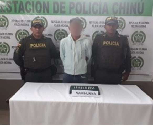La primera acción policial se llevó a cabo en el barrio La Victoria de Chinú donde los uniformados le hallaron a un hombre de 22 años de edad, 30 dosis de marihuana envueltas en forma de cigarrillo, listas para su comercialización.