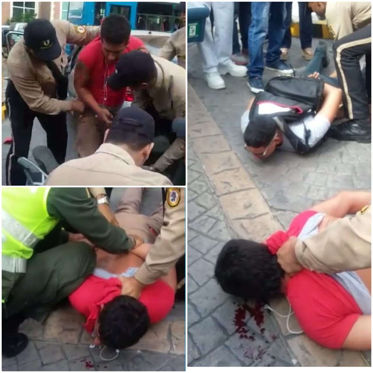 En video quedó registrado el momento en que los asaltantes fueron detenidos por los funcionarios de seguridad del centro comercial en compañía de los policías, donde se observa como algunas víctimas del asalto comenzaron a golpear a los sujetos.