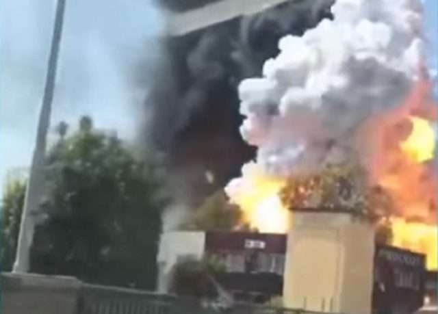 En las imágenes que quedaron registradas en video, se observa una gigantesca columna de humo, la cual salía de los restos de un camión carbonizado.