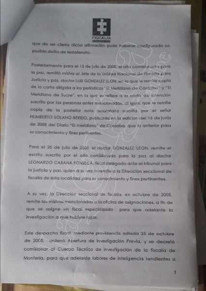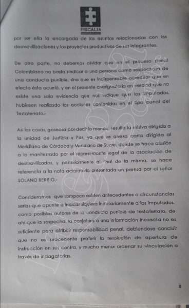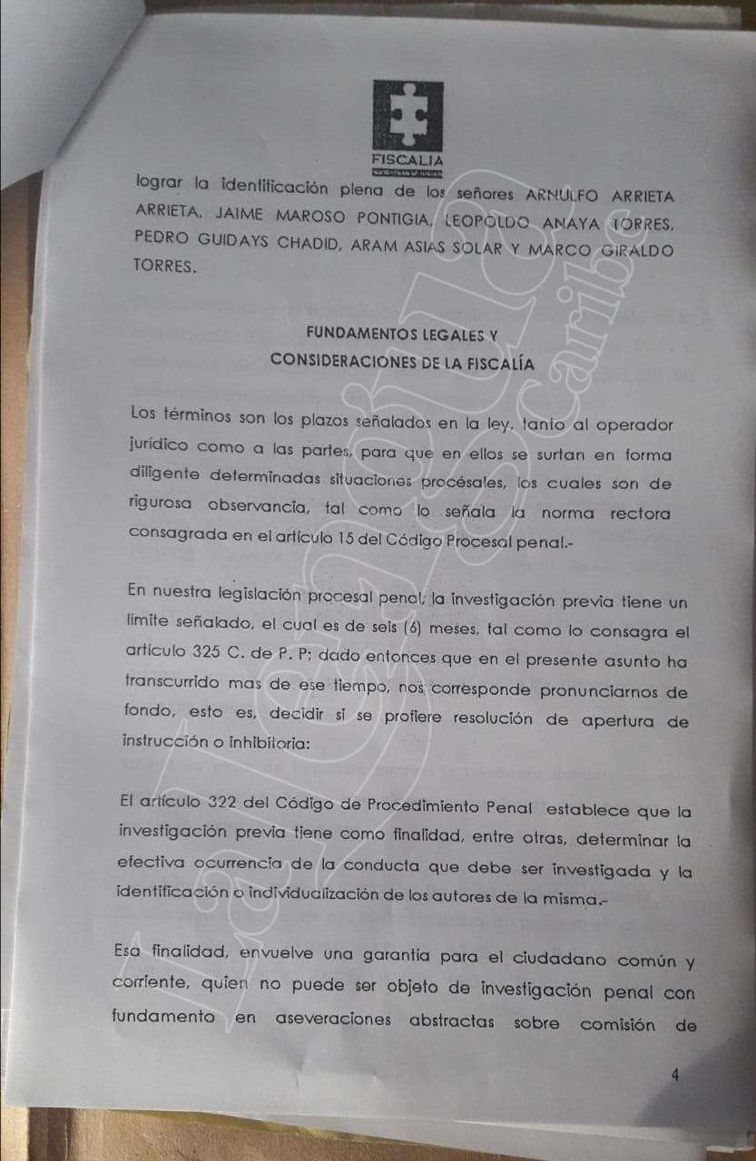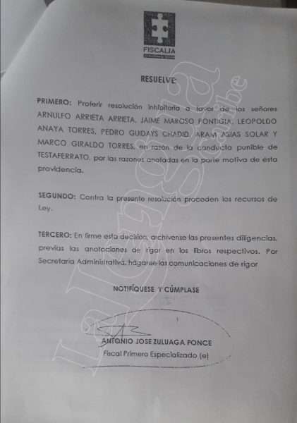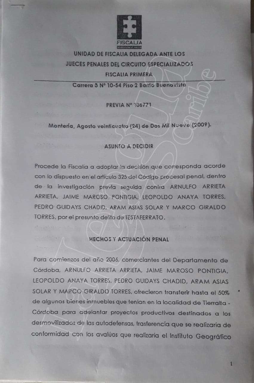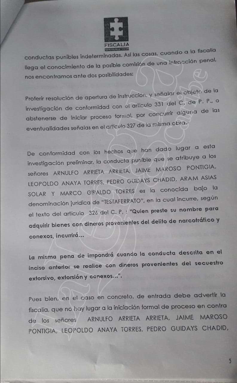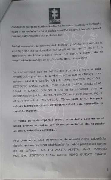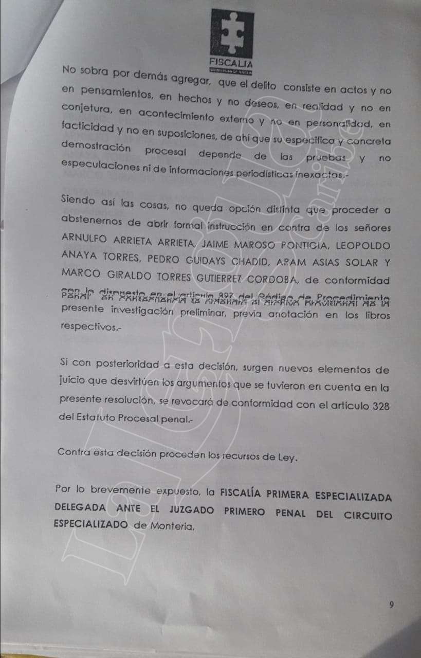 La Lengua Caribe tuvo acceso a la Resolución 106771 de agosto del 2009 por medio de la cual la Fiscalía General de la Nación profirió inhibitorio a favor de Jaime Moroso y decidió no investigarlo por la conducta antes mencionada.