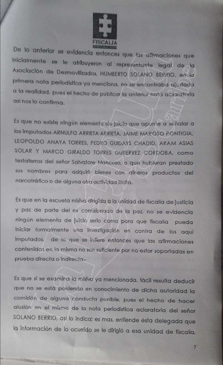 Así las cosas, los corruptos que querían dañar la imagen de Jaime Maroso quedaron mal ‘parados’ porque su contradictor es una persona que no tiene problemas con la justicia y que la misma Fiscalía concluyó que no es cierto que sea testaferro de Mancuso.