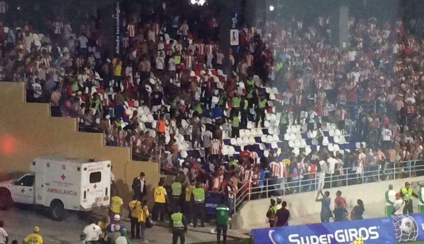 El conjunto tiburón con un juego vistoso derrotó categóricamente con un 3-0 al Atlético Huila, sin embargo, un grupo de mal llamados hinchas protagonizaron una gresca en la tribuna techada del recién remodelado estadio Romelio Martínez de la capital atlanticense, donde se llevó a cabo el encuentro.