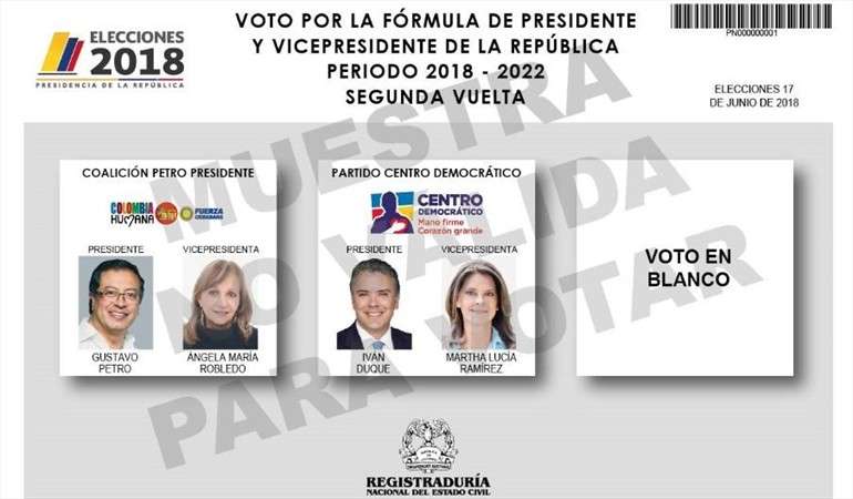 A través de su cuenta de Twitter la Registraduría Nacional publicó como será tarjetón para la segunda vuelta de las elecciones presidenciales: