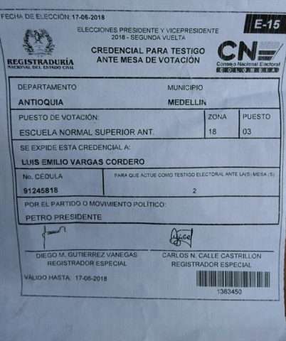 • En Fortul, Arauca fue capturada una mujer que se identificó con la credencial de un testigo electoral en la mesa #10 del polideportivo municipal.