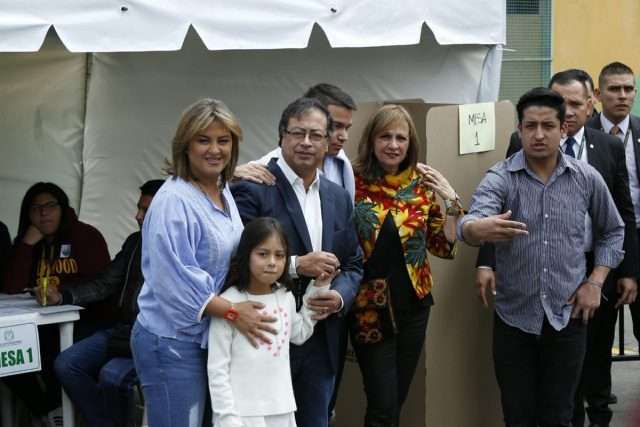 A las 11 de la mañana de hoy 17 de junio, el candidato del partido Colombia Humana, Gustavo Petro, ejerció su derecho al voto en la localidad de Puente Aranda.