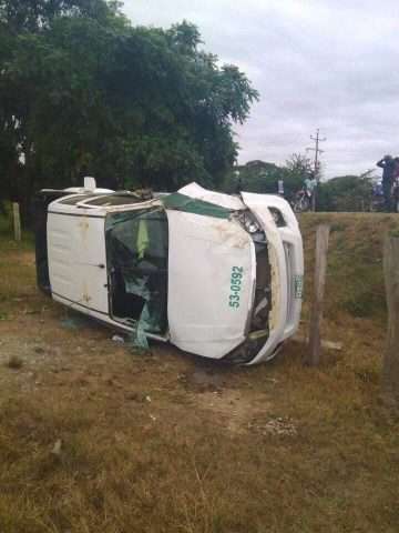Al parecer el vehículo perteneciente a la policía nacional perseguía un furgón y en medio de la acción policial la camioneta de volcó frente a la Finca San Mateo, al parecer por mal estado de la vía