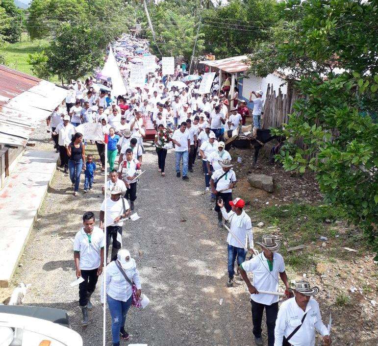 A esta hora los campesinos y campesinas del corregimiento de Juan José en el municipio de Puerto Libertador, Córdoba, realizan una marcha en rechazo al asesinato del líder social Iván Lázaro, de la Asociación de Campesinos del Sur de Córdoba y se declaran en defensa de la paz en su territorio.