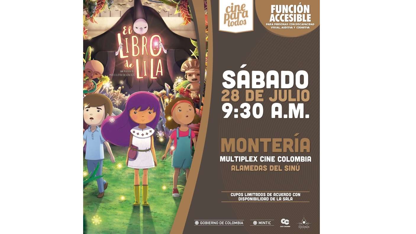 Este sábado 28 de julio regresa a Montería Cine Para Todos, la iniciativa del Ministerio de Tecnologías de la Información y las Comunicaciones (MinTIC), en alianza proyectará películas para los que no pueden ver u oír en la sala de Cine Colombia, ubicada en el Centro Comercial Alamedas del Sinú.