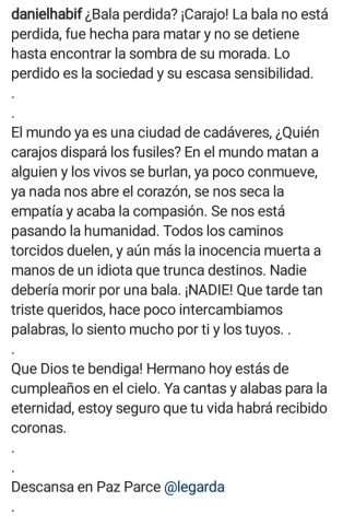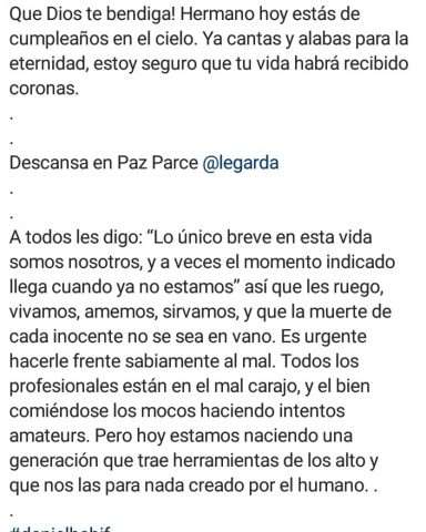 Asimismo, Habif quien es muy reconocido por sus charlas motivacionales realizó una dura crítica sobre la sociedad y manifestó que la muerte de cada inocente no sea en vano.