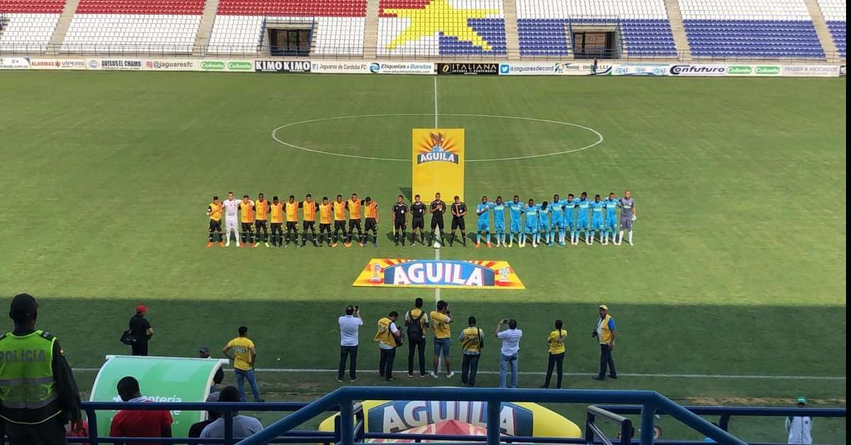 Para el encuentro que se llevó a cabo en el gramado del estadio Jaraguay de Montería, los felinos dispusieron una nómina mixta con la que buscaron imponer condiciones y lo consiguieron, pues se adelantaron en el marcador rápidamente a través de Braison Cardona al minuto 5, luego aumentaron la ventaja al 25 con anotación de Mauricio Cortés.