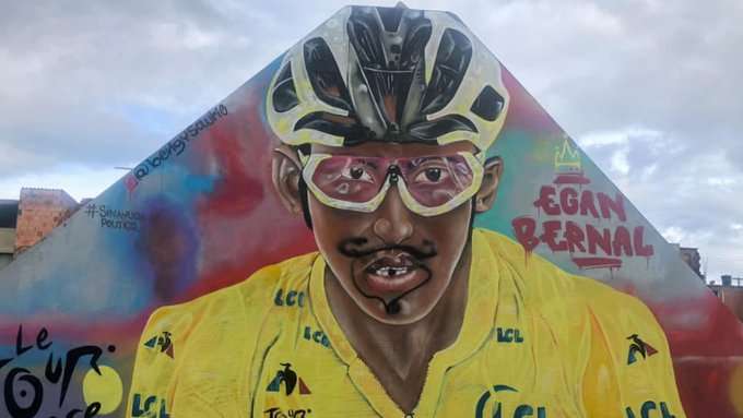 El pedalista colombiano Egan Bernal luego de coronarse campeón del Tour de Francia 2019 fue homenajeado en su natal Zipaquirá con un mural pintado por el artista urbano, quien pintó al joven escarabajo portando el maillot amarillo conseguido en territorio galo.