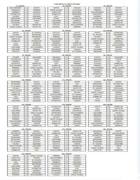 La División Mayor del Fútbol Colombiano, Dimayor, dio a conocer el calendario completo del campeonato colombiano para el 2020, que a partir de ahora pasará a llamarse Liga Bet-Play, esto porque la afamada casa de apuestas es el nuevo patrocinador.