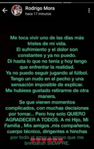 Luego de conocerse que Rodrigo Mora no viajaría a la pretemporada de River en Uruguay tras el recrudecimiento de los dolores en la cadera, el delantero manifestó su retiro definitivo del fútbol.