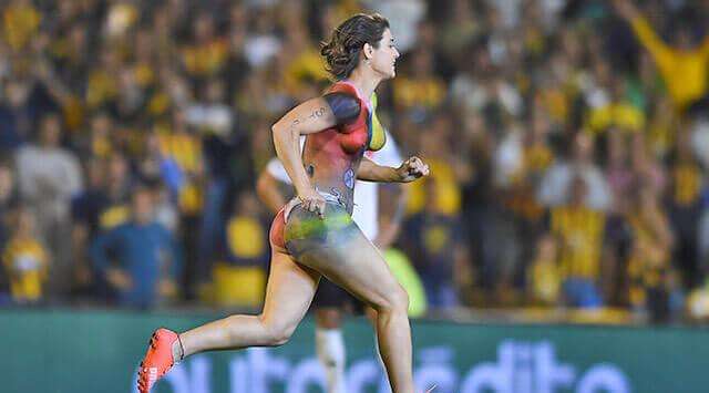 Los aficionados que asistieron al estadio Gigante de Arroyito la noche de este jueves 14 de febrero, no solo disfrutaron del gran espectáculo futbolístico que protagonizaron Rosario Central y River Plate, sino que presenciaron la interrupción del partido por una mujer que ingresó semidesnuda al gramado para enviar un mensaje de fútbol en paz.