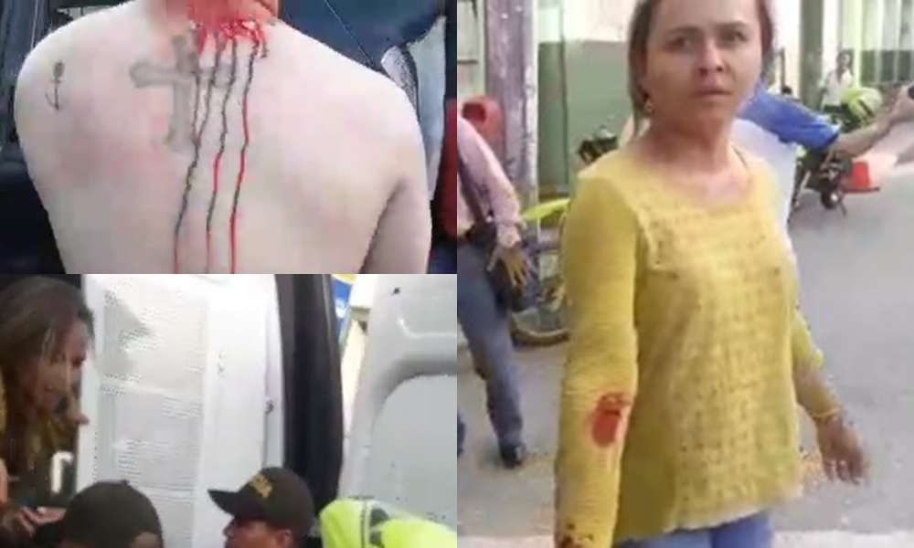 ¿Abuso de autoridad? En pleno Centro de Montería policías levantan a bolillo a una mujer y a su hijo