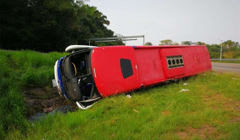 En las últimas horas un aparatoso accidente se registró en horas de la mañana en el intercambiador vial de Caño Alegre en Puerto Boyacá, donde un bus de la empresa Expreso Brasilia que cubría la ruta Bogotá – Cartagena de Indias, se volcó en la vía.
