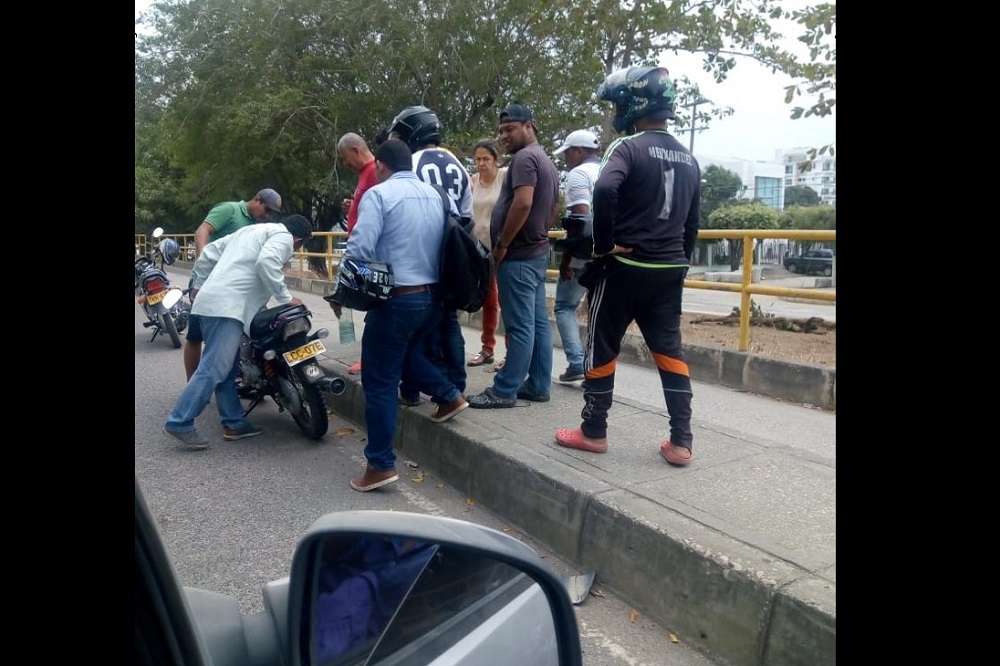 Según testigos, el conductor de una motocicleta perdió el control de esta y chocó contra otra, afortunadamente no hubo heridos.