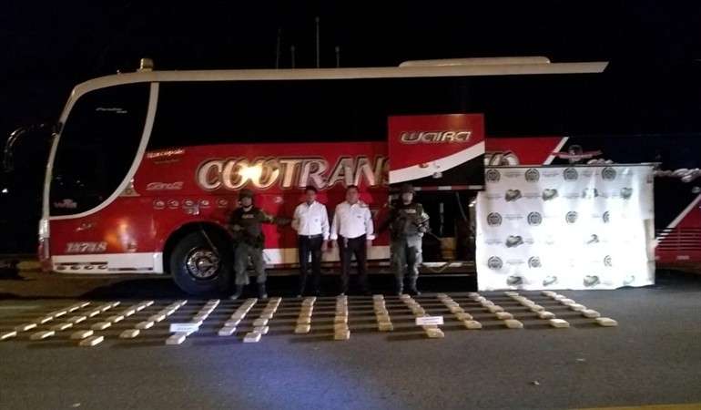 Un vehículo de servicio público de la empresa Cootransmayo que cubría la ruta Cali, Valle-Ipiales, Nariño, fue detenido por las autoridades y lo descubrieron con 95 kilogramos de cocaína.