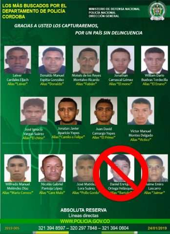 En las últimas horas la Policía de Córdoba logró la captura de Daniel Ortega, de 24 años de edad, alias ‘Bartolo’, quien era requerido mediante orden judicial por los delitos de concierto para delinquir y tráfico, fabricación o porte de estupefacientes.