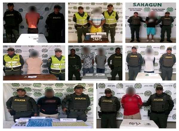 Las dos primeras acciones policiales se llevaron a cabo en el barrio Mucha Jagua de Montelíbano, momentos en que los uniformados se encontraban realizando planes de registro, control e identificación de personas y lograron sorprender a tres sujetos de 38, 24 y 64 años de edad, portando 562 dosis de marihuana y bazuco, distribuidos en envolturas de papel y plástico listos para su comercialización y venta.