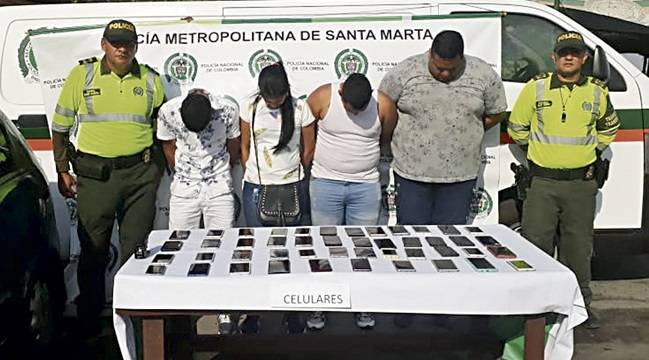 De acuerdo al reporte judicial, personal de carreteras de la Policía Metropolitana de Santa Marta logró la captura de Jorge Amado Linero, Brainer de Jesús Omar Mora, Luis Alberto Díaz Pardo y Leidy Dayana Zambrano, quienes se desplazaban en un automóvil de placas KFW-249, en el que llevaban camuflados los celulares.