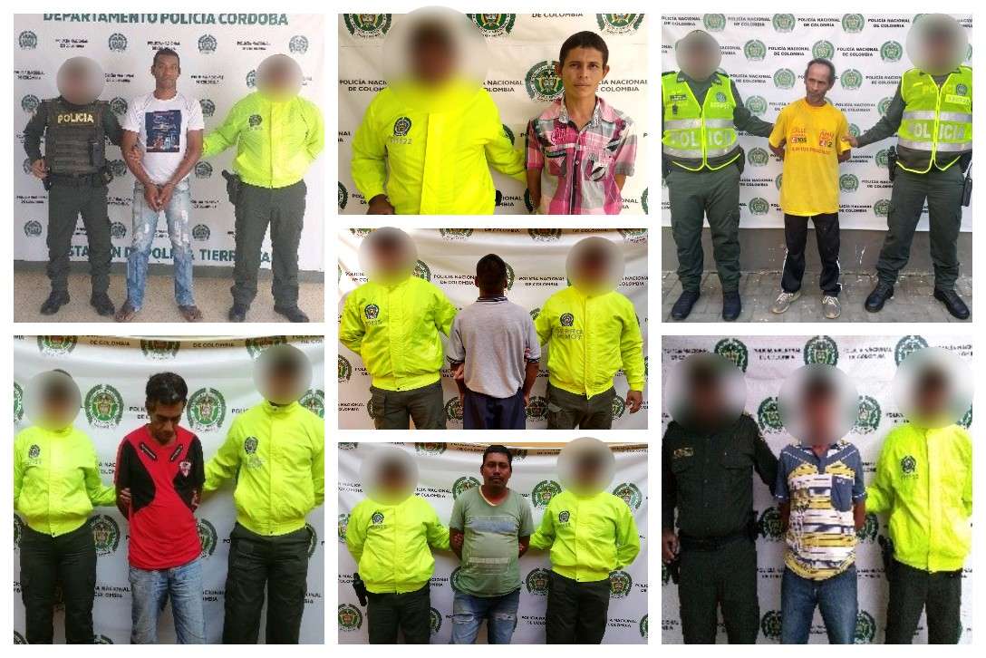 En las últimas horas las autoridades lograron la captura por orden judicial de siete personas de 18 y 57 años de edad en los municipios de Tierralta, Montelíbano, Planeta Rica, Pueblo Nuevo y Montería.