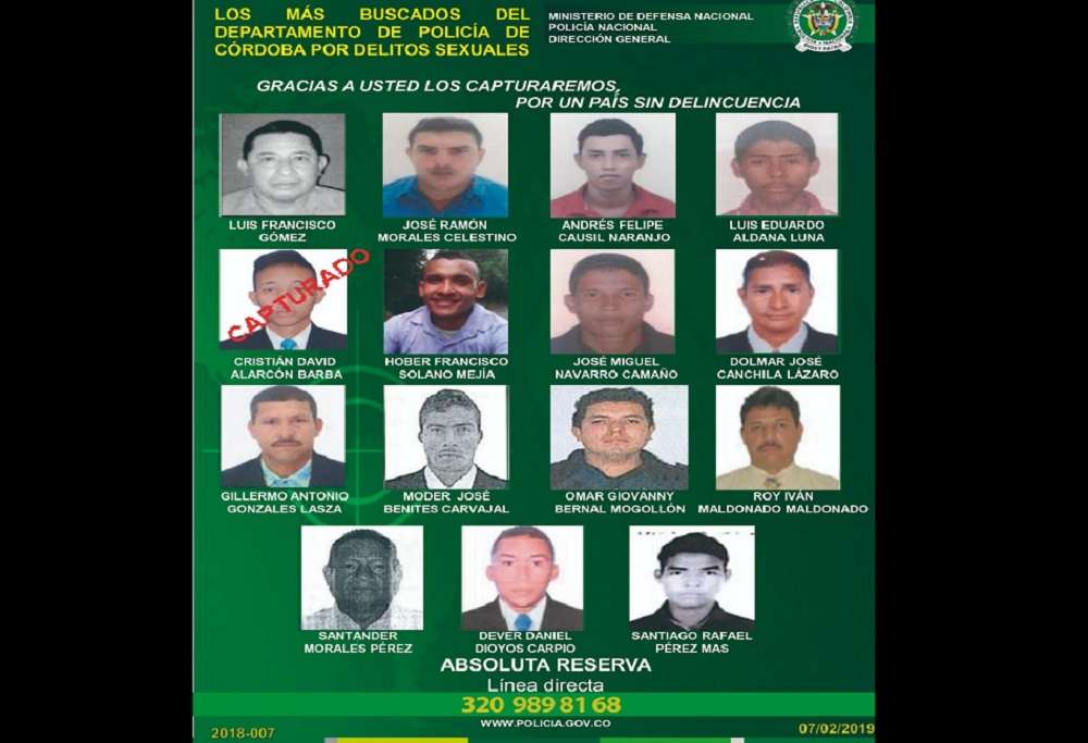 La Policía Nacional de todos los colombianos, habilitó la línea 320 989 8168, en la cual se recibirá información que conlleve a la captura de los presuntos abusadores bajo absoluta reserva, los hombres son investigados por hechos sucedidos en Lorica, Planeta Rica, Sahagún y Montelíbano.