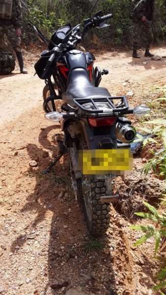 Junto a la motocicleta de alto cilindraje, fueron hallados un arma larga, una arma corta, munición de diferentes calibres, equipos de comunicaciones y material de intendencia.