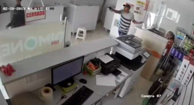 Mientras tanto el otro criminal sacó un arma de fuego para amenazar a la cajera e intentó entrar al cubículo pero no lo logró.