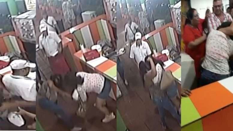 En video quedó registrado el momento en el que dos mujeres protagonizaron una bochornosa pelea en el establecimiento Pollo Arana de la calle 41 de la ciudad de Montería.