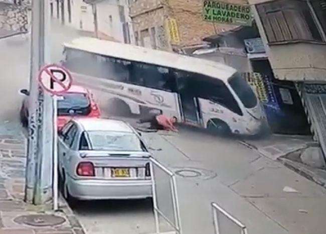 En pleno centro de San Gil, Santander, el conductor de un bus se salvó de morir arrollado por las llantas del vehículo que conducía luego de que este sufriera una falla mecánica.