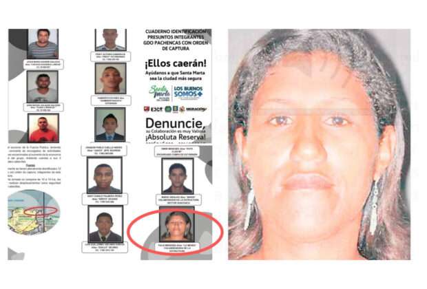 De acuerdo al reporte judicial, la mujer que se presentó ante la Sijín de la Policía, integraba la lista de los 12 más buscados en Santa Marta por pertenecer a la organización criminal ‘Los Pachencas’, liderada por Jesús María Aguirre, alias ‘Chucho Mercancia’.