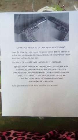 Estos hechos que representan una situación de extrema gravedad por los asesinatos reiterados, ha demostrado que no hay mucho trecho entre la amenaza y el hecho, por lo que la circulación de un nuevo pasquín que amenaza de muerte a varias mujeres y a uno que a otro hombre, ha sembrado el terror en Montelíbano y Caucasia, Antioquia.