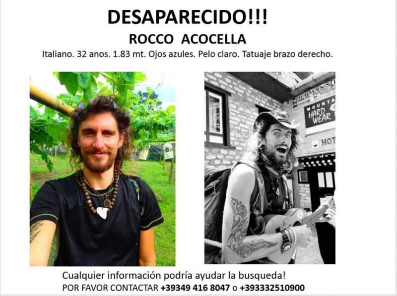 Fue así como las autoridades identificaron de manera tardía la señal emitida por este y hasta la fecha no ha sido posible encontrar a Rocco Acocella.