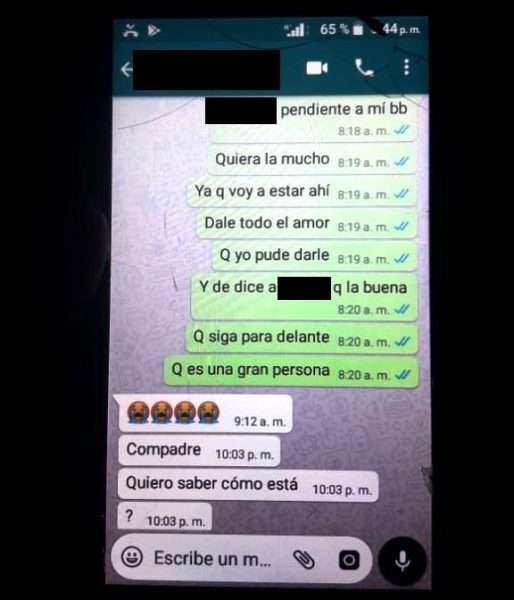 Este sería el mensaje que dejó a traves de WhatsApp Neiver Moya.