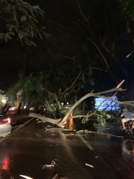 La tormenta eléctrica, que estuvo acompañada de fuertes vientos, rayos y relámpagos, provocó la caída de varios árboles en la capital cordobesa. La vía hacia Cereté fue una de las más afectadas, las ramas y árboles que se vinieron abajo, restringieron el paso de vehículos y transeúntes.