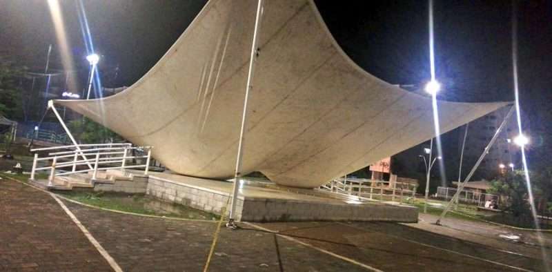 El vendaval también provocó la caída de la carpa del teatrino que se encuentra ubicado en el barrio Los Laureles.