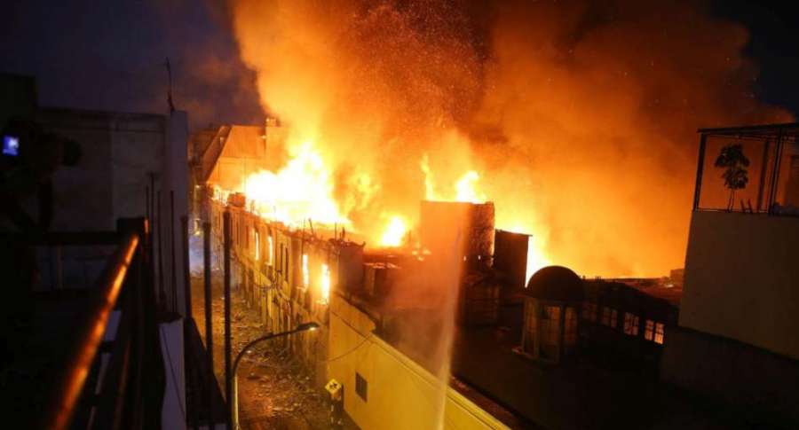 Un lamentable hecho se registró en el sector de Mesa Redonda, en Lima, Perú donde se produjo un incendio que causó el derrumbe de cornisas y paredes.