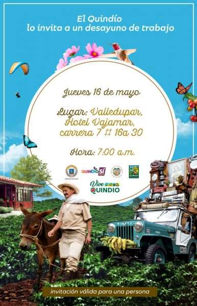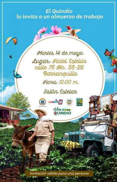 Durante cuatro días (desde el martes 14 de mayo hasta el viernes 17 de mayo) el Quindío, en cabeza de la Secretaría de Turismo, Industria y Comercio departamental, estará recorriendo Barranquilla, Cartagena, Valledupar y Montería, junto a 18 empresarios turísticos del departamento. Parques temáticos, touroperadores receptivos, recorridos cafeteros y Alojamientos se tomarán la Costa Atlántica para socializar la oferta turística del Destino, sus novedades y experiencias por descubrir.