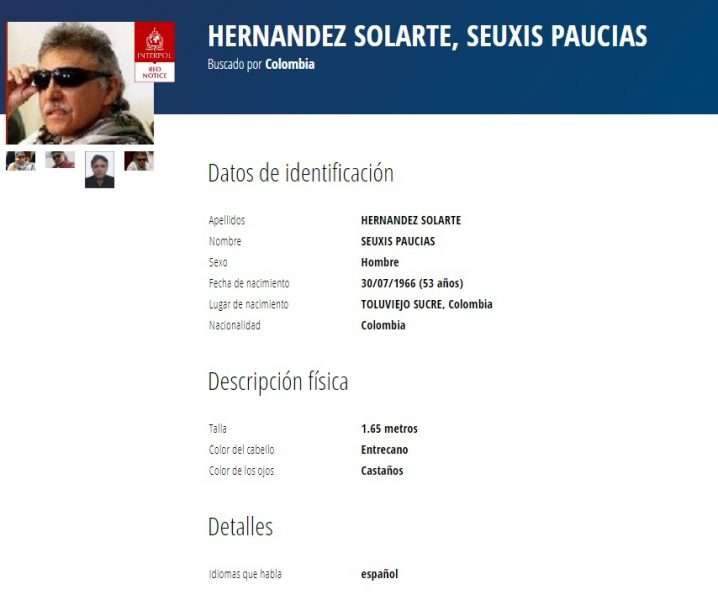 La policía internacional con 194 países miembros, publicó en su página web las circulares contra ‘Santrich’, una por pedido de Colombia y otra por la justicia de Estados Unidos.
