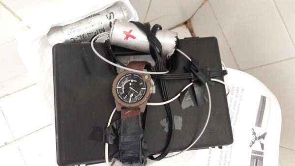 En el lugar se detectaron varios cables en un maletín, un reloj y un panfleto donde se lee ¡Pilas! Estalla a las 11:35”