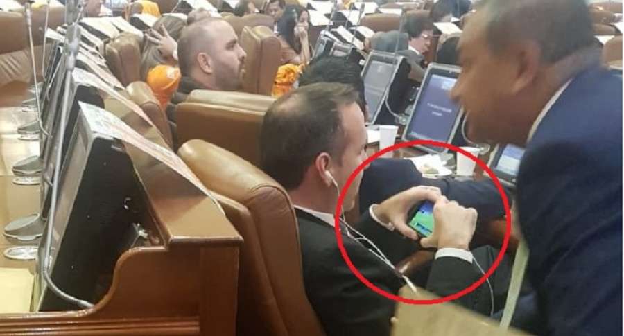 Una periodista que estaba en el congreso le tomó una fotografía al representante a la Cámara Héctor Vergara Sierra, del partido Cambio Radical, mientras se veía un partido de la Champions League en pleno debate de la reforma tributaria.